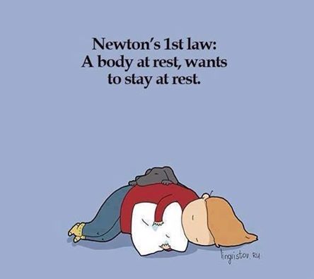 زندگی این روزهای من به صورت کاملی از این قانون اول نیوتون تبعیت میکند. حال و حوصله ی انجام هیچ کار مفیدی را ندارم. البته توی ذهنم خیلی کارها قراره انجام بدم ولی تنها نتیجه ای که از همه ی آن کارهای توی ذهنم گرفته م اینه که هشت کیلو چاقتر بشم.